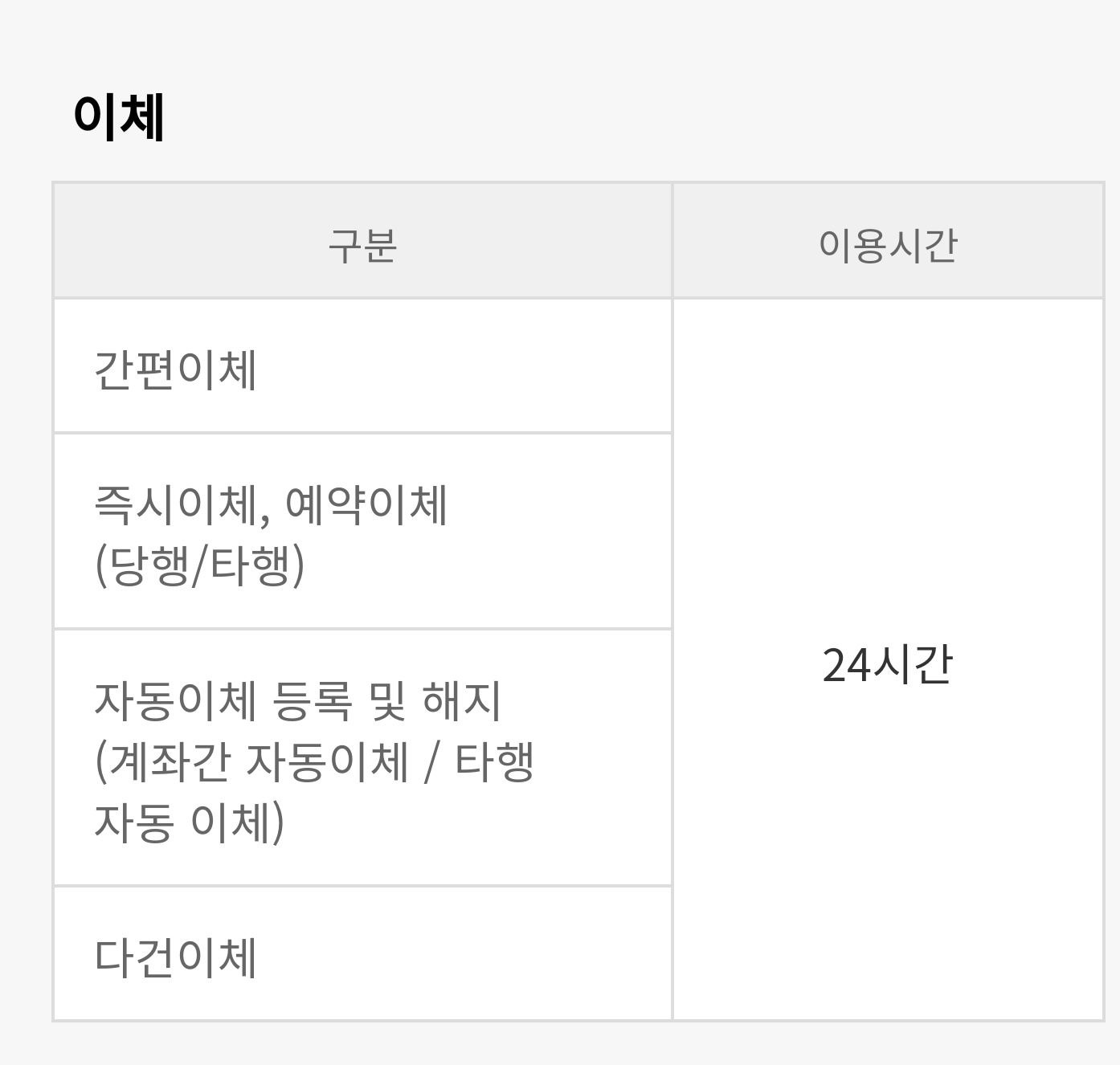 그렇기 때문에 미리 미리 이체 가능한시간 또는 서버점검시간을 확인해서
