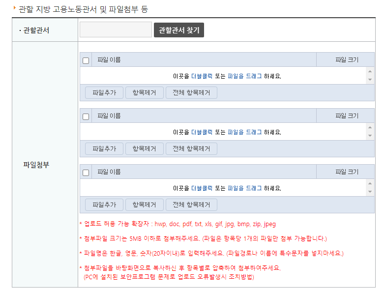 | 관할관서 선택 - 사업장 기준 관할 지방 고용노동관서 선택 |