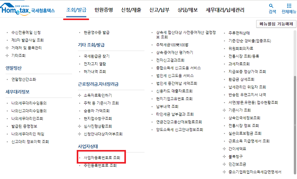 1. 국세청 홈택스에서 사업자등록번호로 조회