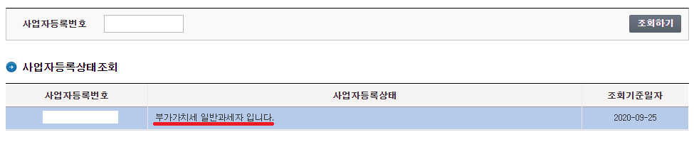 제가 조회한 사업자는 부가가치세 일반과세자로 나오네요.