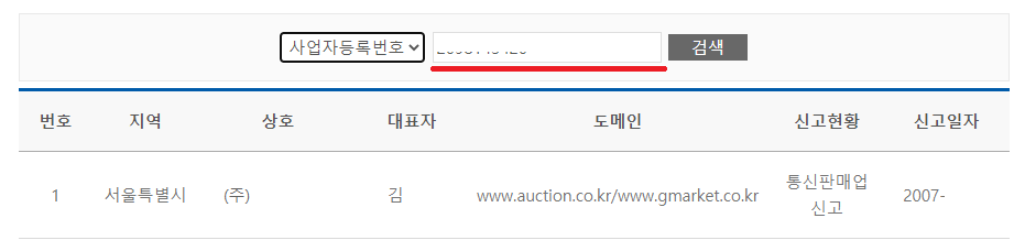 공정거래위원회에서 조회된 통신판매사업자 정보로 홈페이지의 정보와 비교 하시면 됩니다.