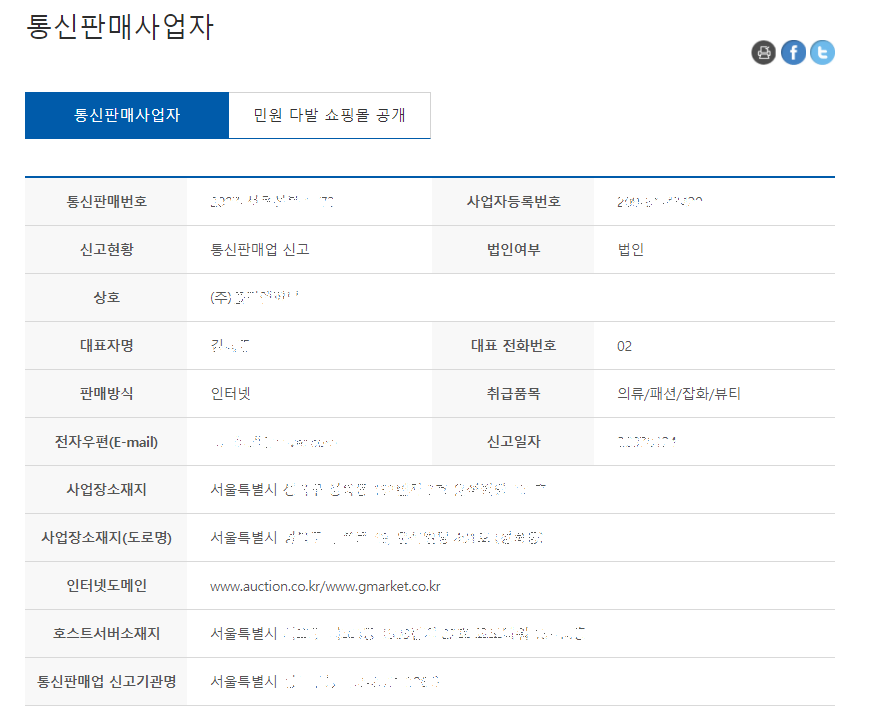 공정거래위원회에서 조회된 통신판매사업자 정보로 홈페이지의 정보와 비교 하시면 됩니다.