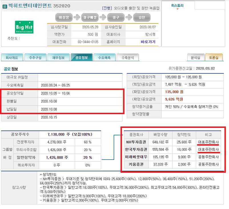 빅히트 공모주 청약이 추석 연후 직후 10월5일 10월 6일 공모주 청약 신청 받습니다.