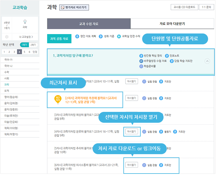 전학년, 전과목 교과 학습 및 평가 자료도 제공되고 있습니다.