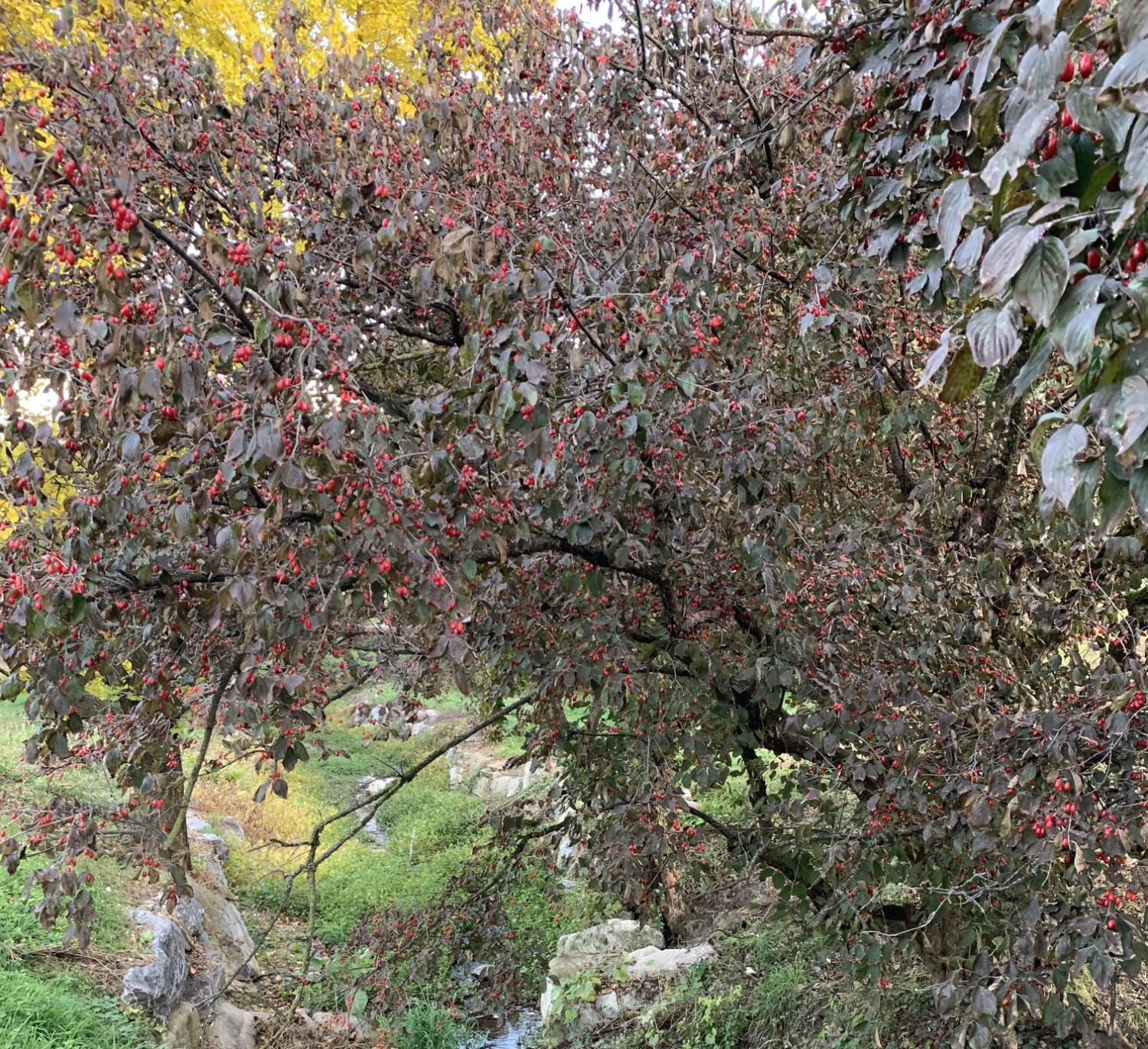 가을에는 산수유열매로 빨갛게 물들입니다.
