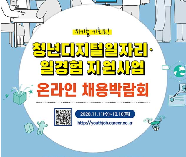 청년디지털일자리 일경험지원 사업 온라인 채용박람회가 11월 11일(수) 오픈 합니다.