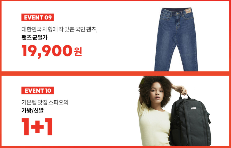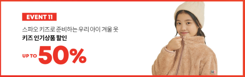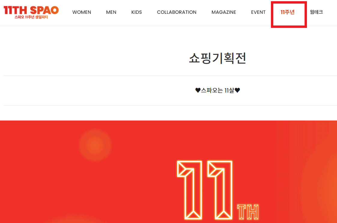 스파오 홈페이지에 들어가서 11주년 탭을 클릭하면 할인하는 품목만 따로 검색할 수 있습니다.