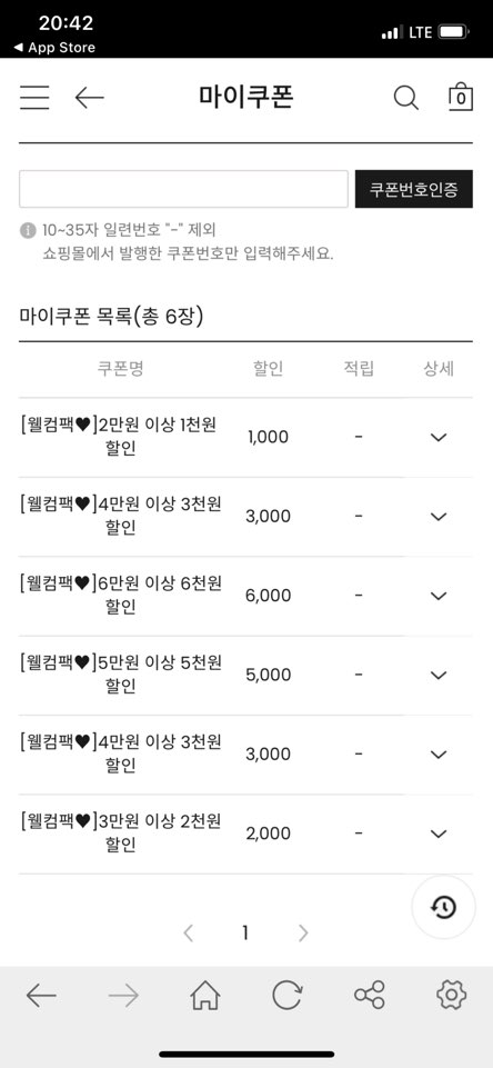 앱으로 다운받은 웰컴 쿠폰팩 입니다.