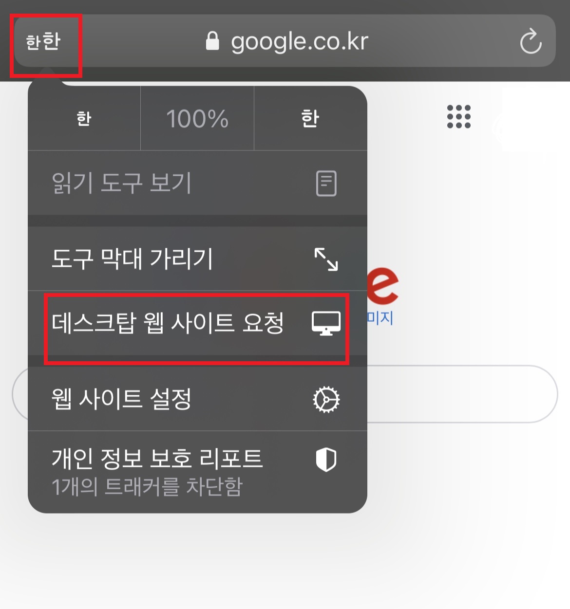 "데스크탑 웹 사이트 요청" 이 있습니다.