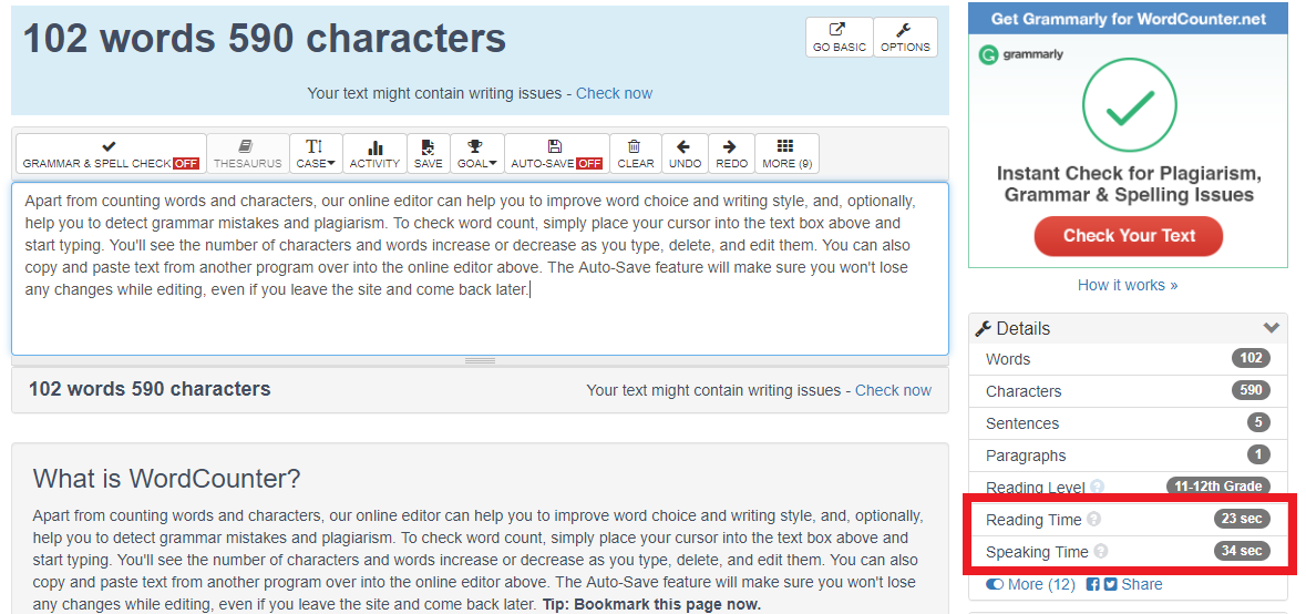 영어 단어수 세기는 WordCounter에서 확인이 편하고