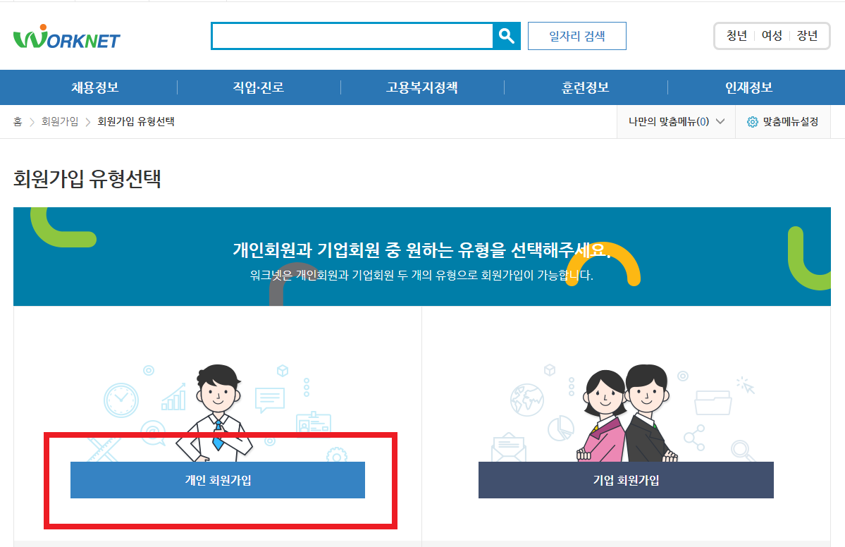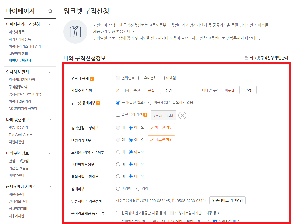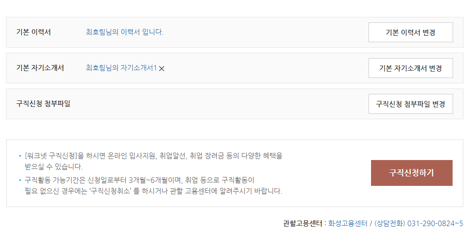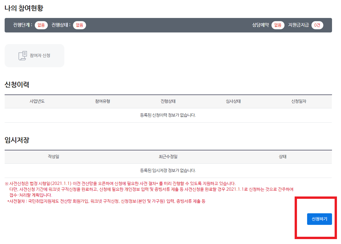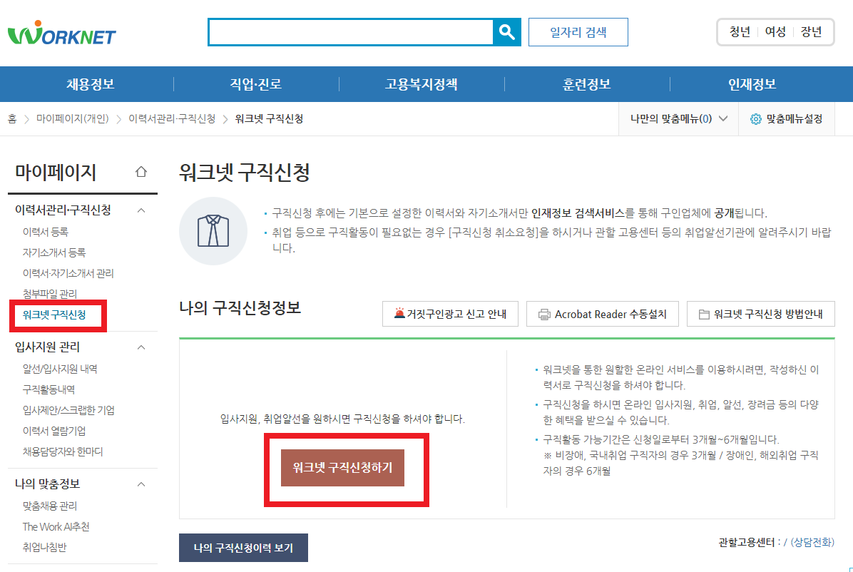 사전신청 기간에 워크넷에 미리 구직신청을 완료하고