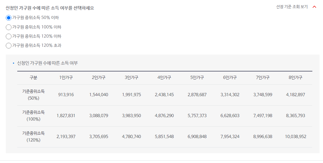 따라 가다 보시면 가구원 수에 따른 소득 기준중위소득도 확인해보실 수 있습니다