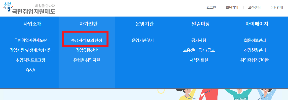 - 자가진단 - 수급자격 모의 산정 메뉴에서 자격확인