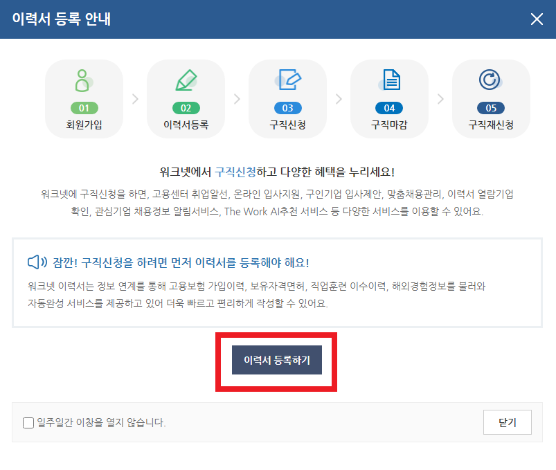 사전신청 기간에 워크넷에 미리 구직신청을 완료하고