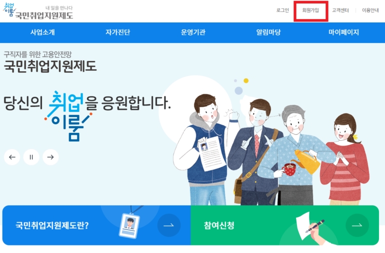 1. 국민취업지원제도 홈페이지에 접속하여 회원가입을 합니다.