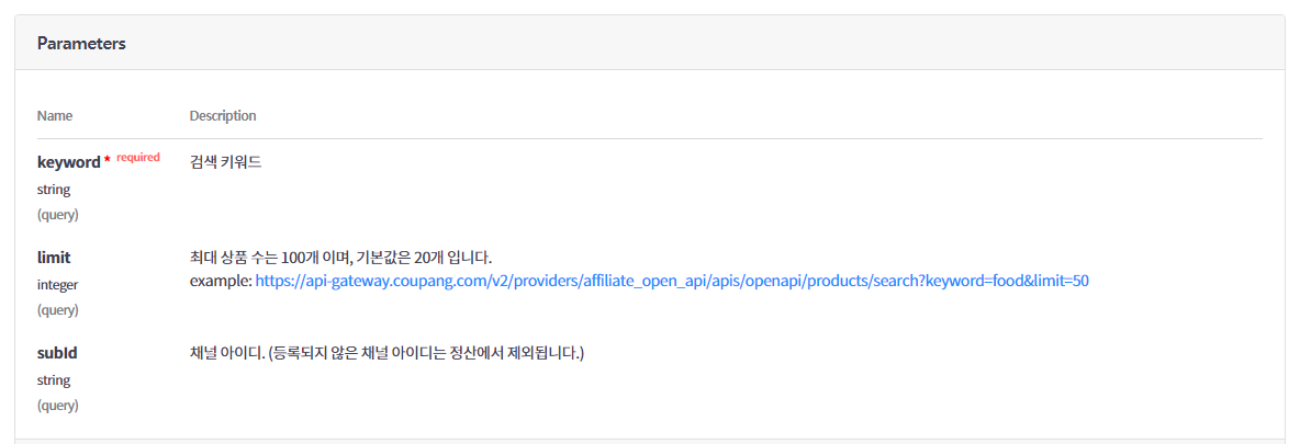 쿠팡파트너스 API 에 POST 방식으로만 예제가 나와있어서