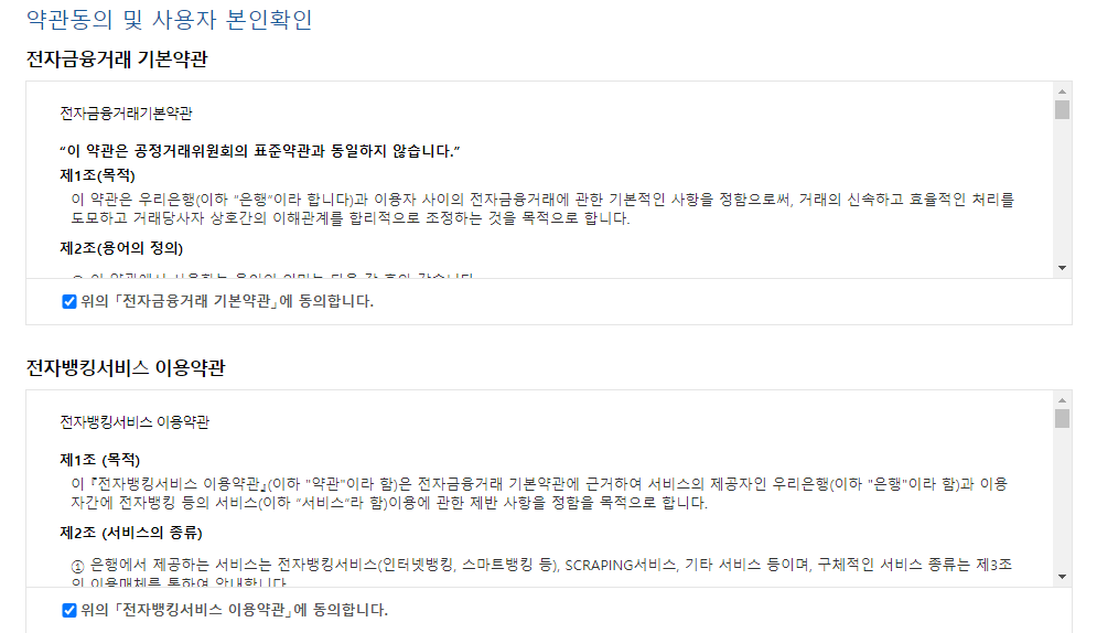 우리은행의 경우 이용자 ID, 주민등록번호로 사용자 본인확인을 합니다.