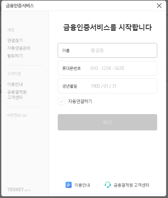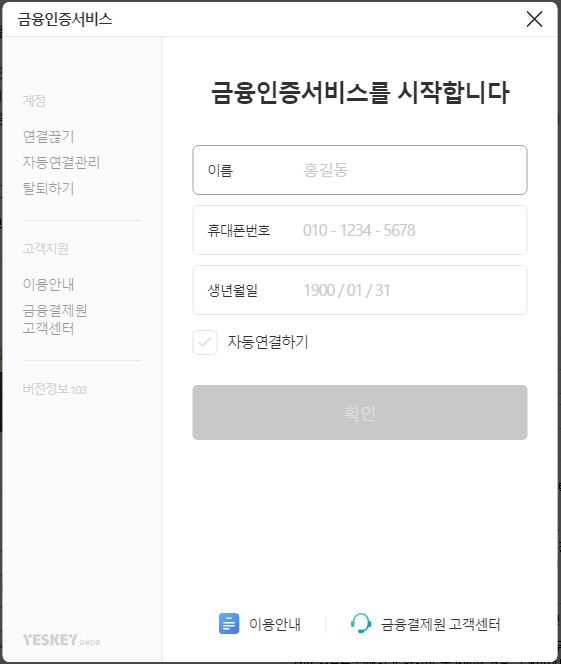 자동연결하기를 선택하시면 다음부터 이름, 휴대폰번호, 생년월일 입력없이