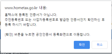 홈택스에 금융인증서를 등록해야 홈택스 로그인이 가능합니다.
