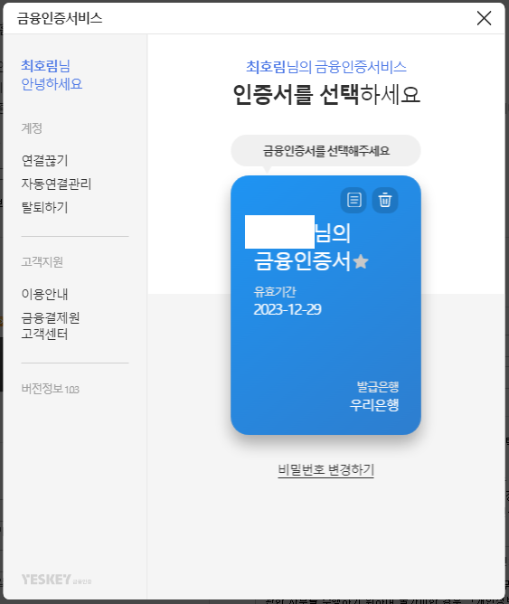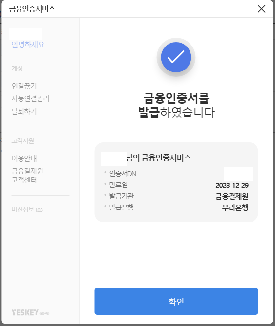 금융인증서 발급을 받으셨으면