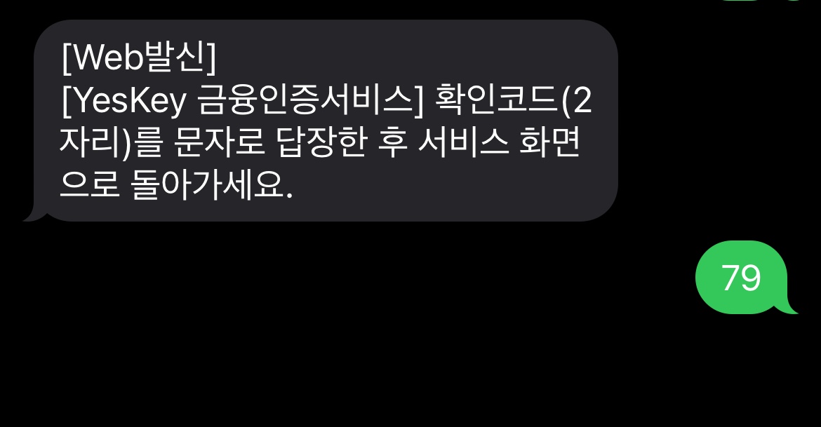 3. SMS문자를 받으시면 확인코드를 문자로 답장