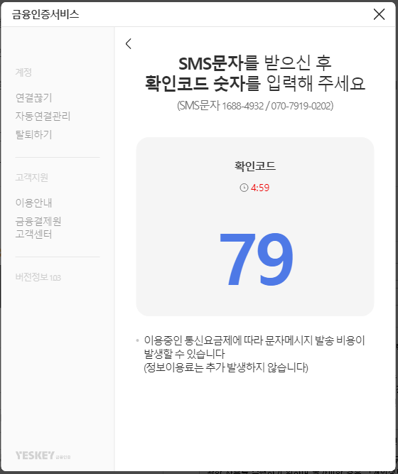 확인코드 답문을 보내면 금융인증서 등록팝업으로 자동으로 이동합니다.