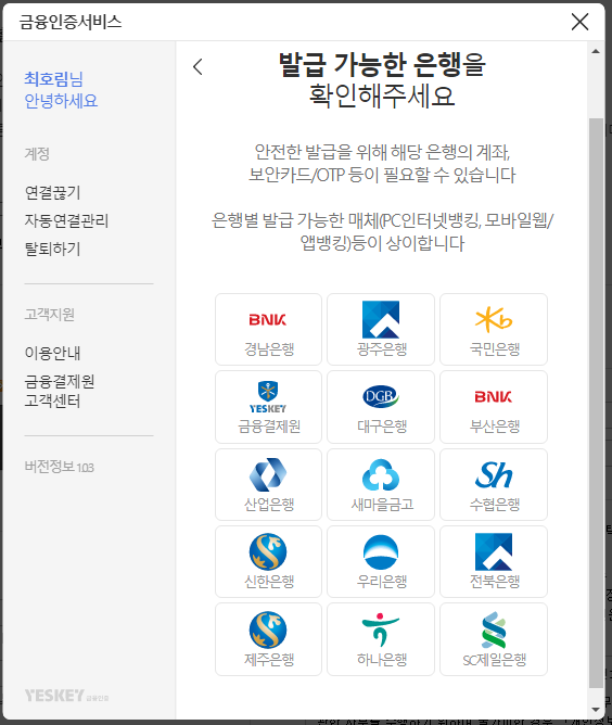 금융인증서 발급 방법
