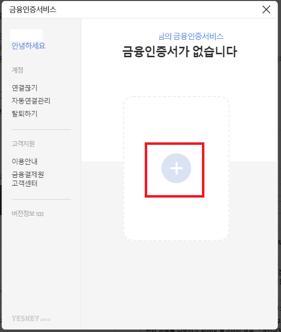 "+" 클릭하여 금융인증서 등록을 시작합니다.