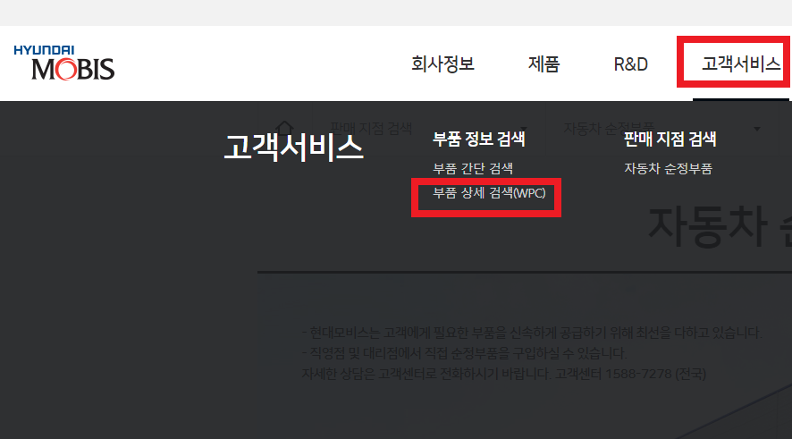 현대모비스 부품몰 부품 조회 방법