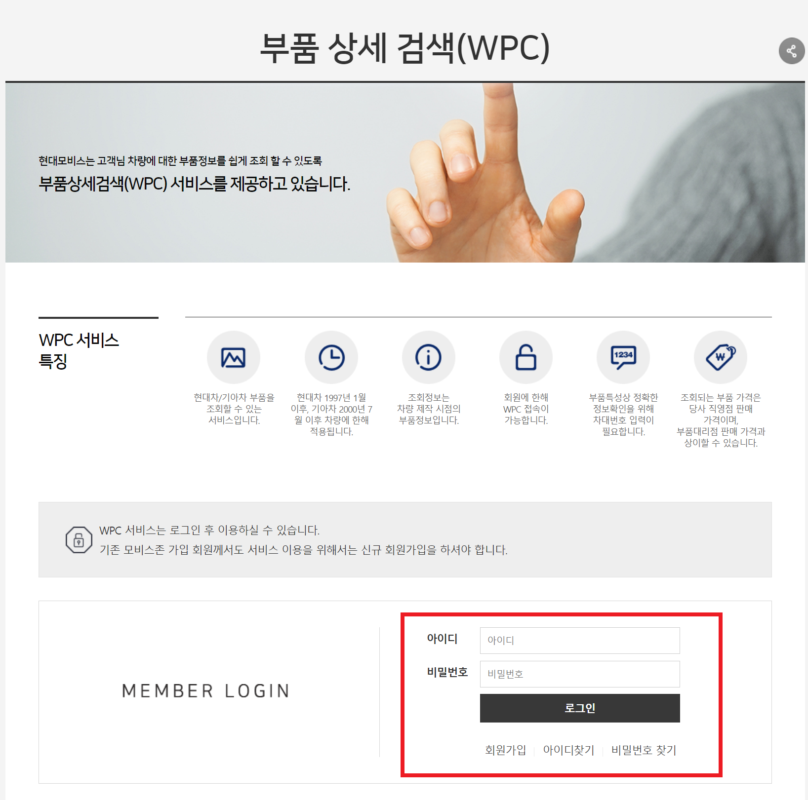 현대모비스 부품몰에는 본인차종에 한해서