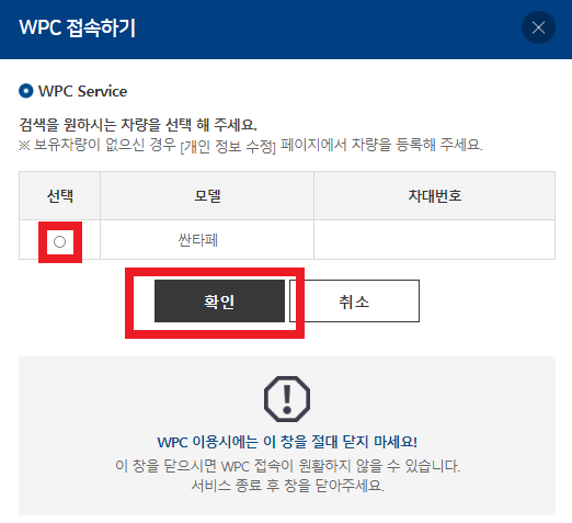 5. 검색을 원하는 차량 선택