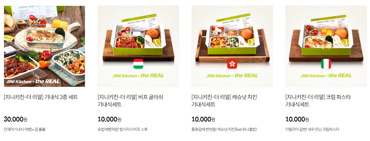 해외여의 묘미인 기내식을 지니키친 더 리얼 시리즈로 집에서도 만나 볼 수 있습니다.