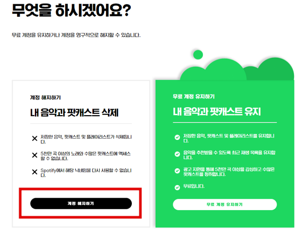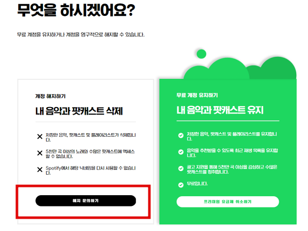 오른쪽 프리미엄 요금제 취소하기는 스포티파이 탈퇴가 아닌 요금제만 취소 입니다.