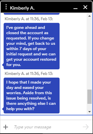 라이브 채팅을 통해서 계정 해지를 요청합니다.