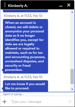 라이브 채팅을 통해서 계정 해지를 요청합니다.