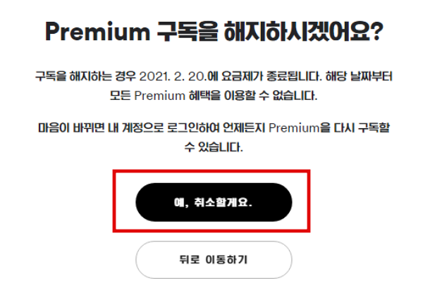 오른쪽 프리미엄 요금제 취소하기는 스포티파이 탈퇴가 아닌 요금제만 취소 입니다.