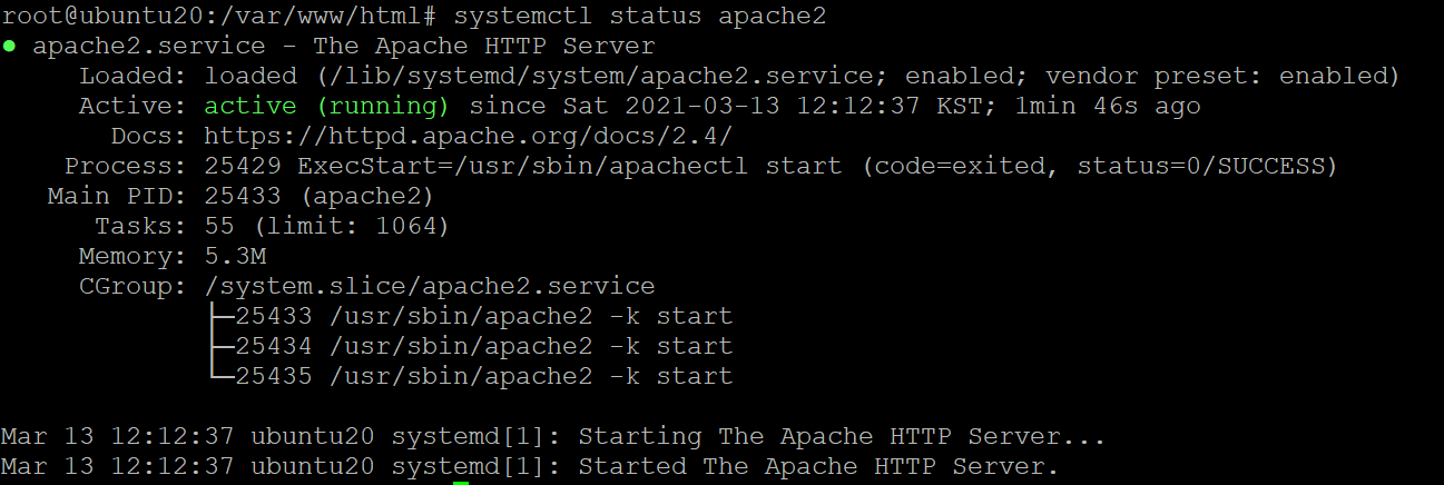 apache2 정상 설치 확인