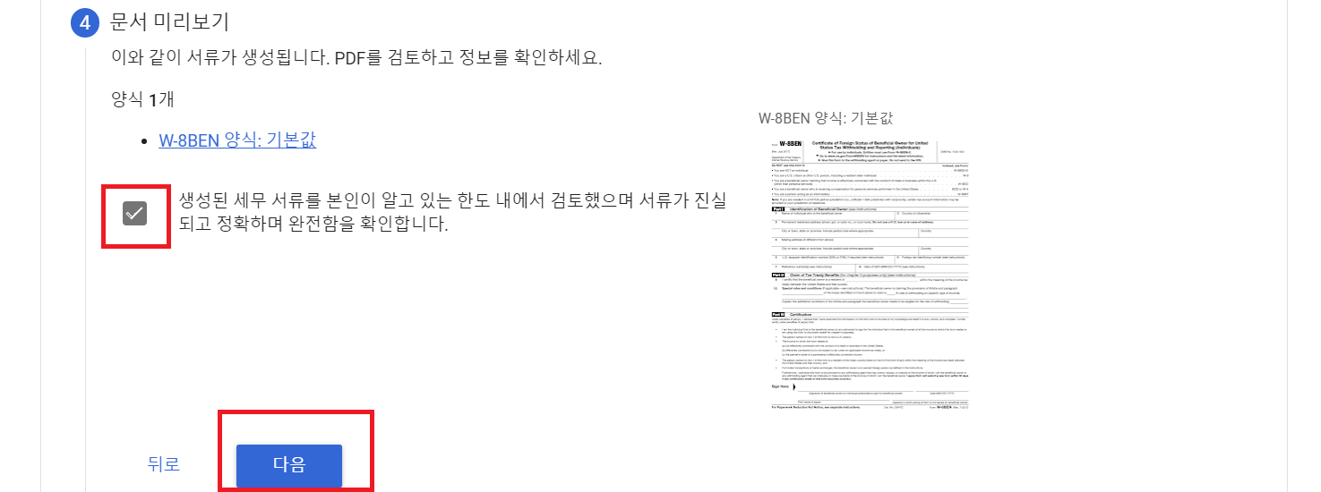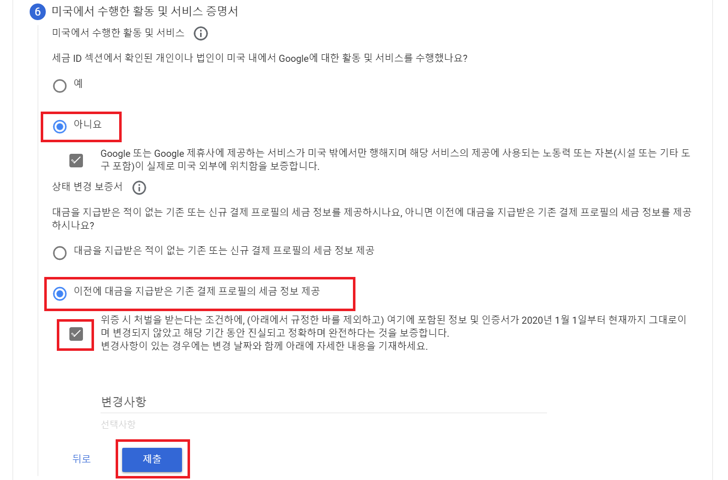 모든 내용을 제출하면 미국 세금정보 입력이 완료 됩니다.