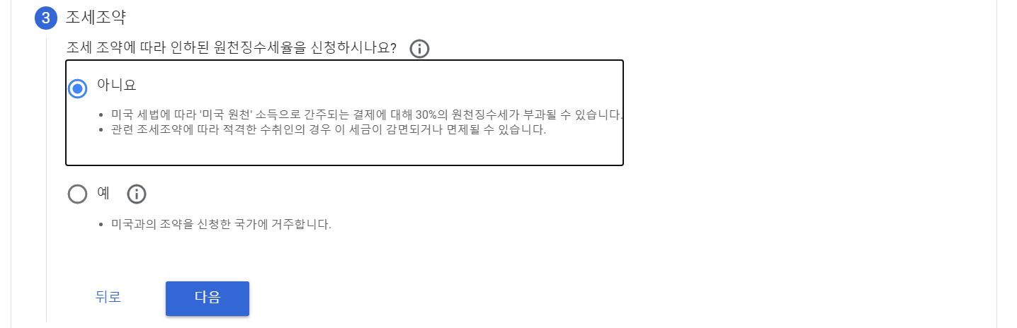 미국 트래픽으로 수익을 내고 계신분들은 아무래도 정당하게 세금을 내야 하겠지만 국내 트래픽으로만 수익이 나고 있기 때문에 설정을 통해서 애드센스 세금을 안내도록 해보겠습니다.