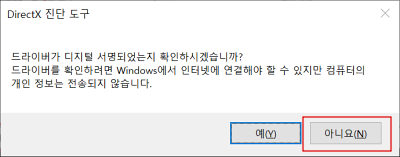 드라이버 디지털 서명 확인은 "아니요" 로 넘어갑니다.