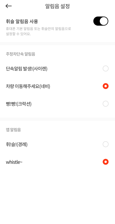 알림 설정에서 주정차단속 알림은 꼭 설정이 되어 있어야 합니다.