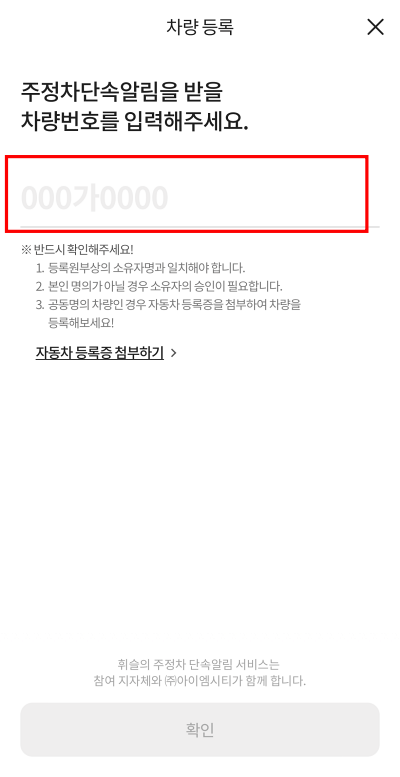 본인 명의 차량이라면 차량번호로 바로 등록가능하고 본인명의 차량이 아니라면 자동차 등록증을 첨부하여야 합니다.