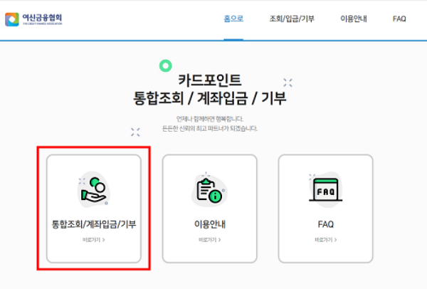 카드포인트통합조회 / 계좌입금 / 기부 언제나 함께하면 행복합니다. 든든한 신뢰의 최고 파트너가 되겠습니다.