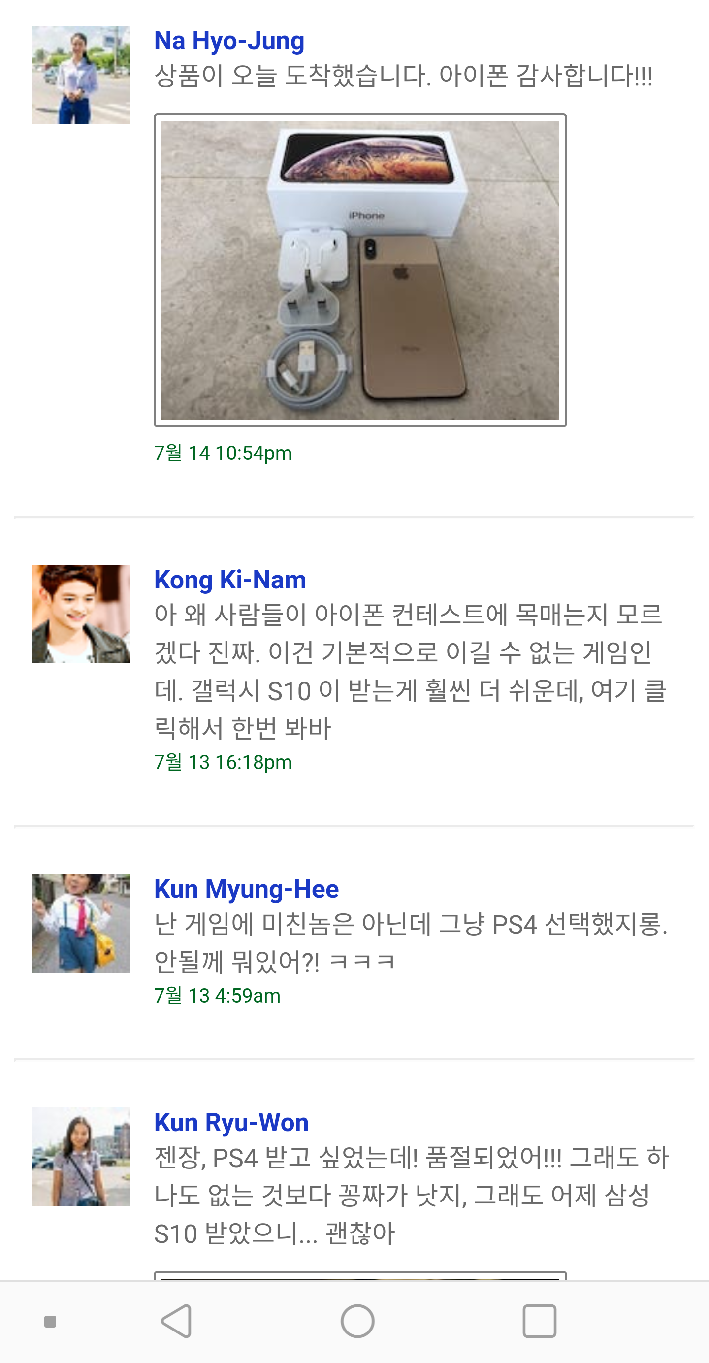 화면 캡춰를 못했지만 나의 당첨 상품은 갤럭시S10 이였다.