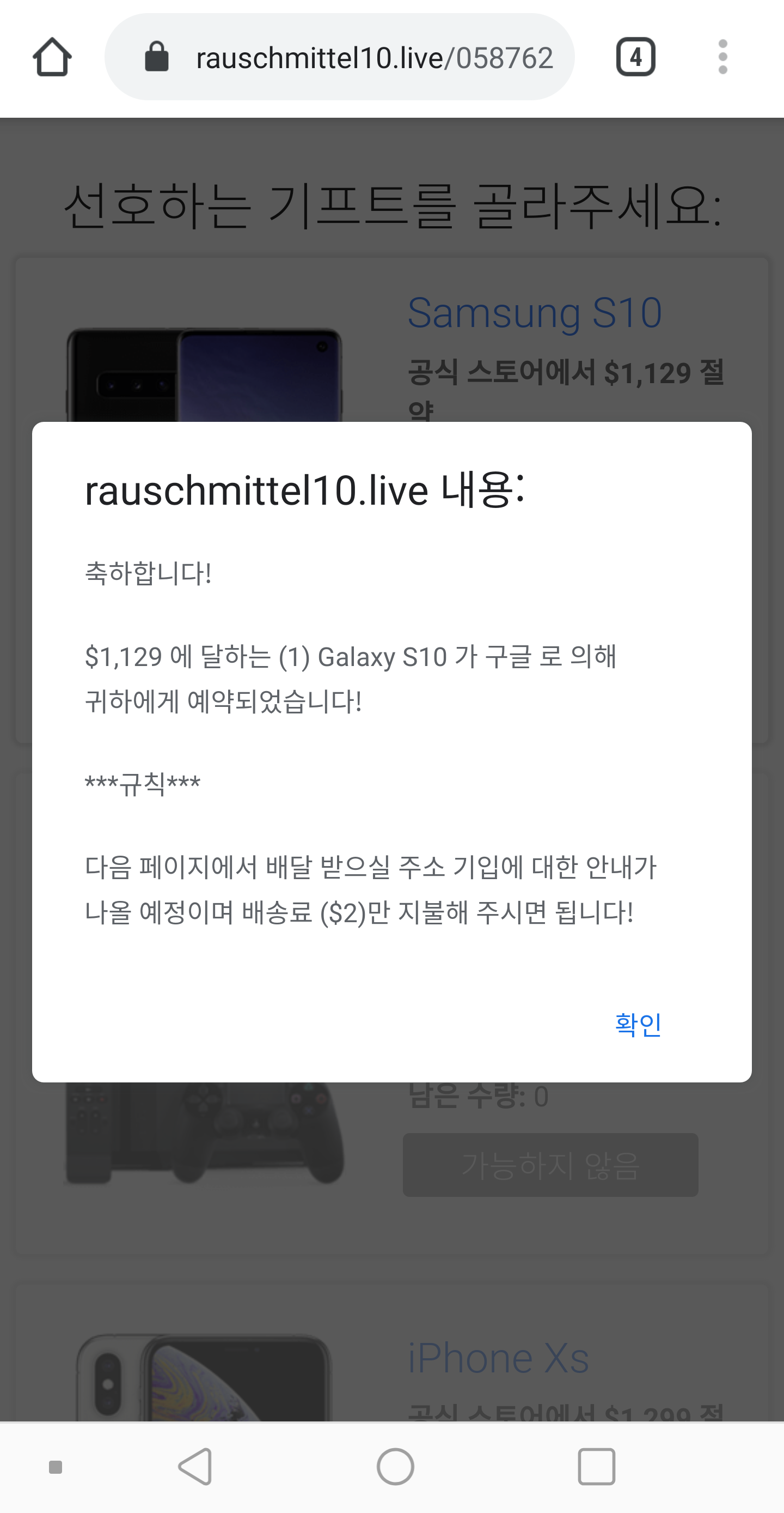 안드로이드 구글 크롬 브라우저를 사용하는중에 피싱사이트에 걸렸다.