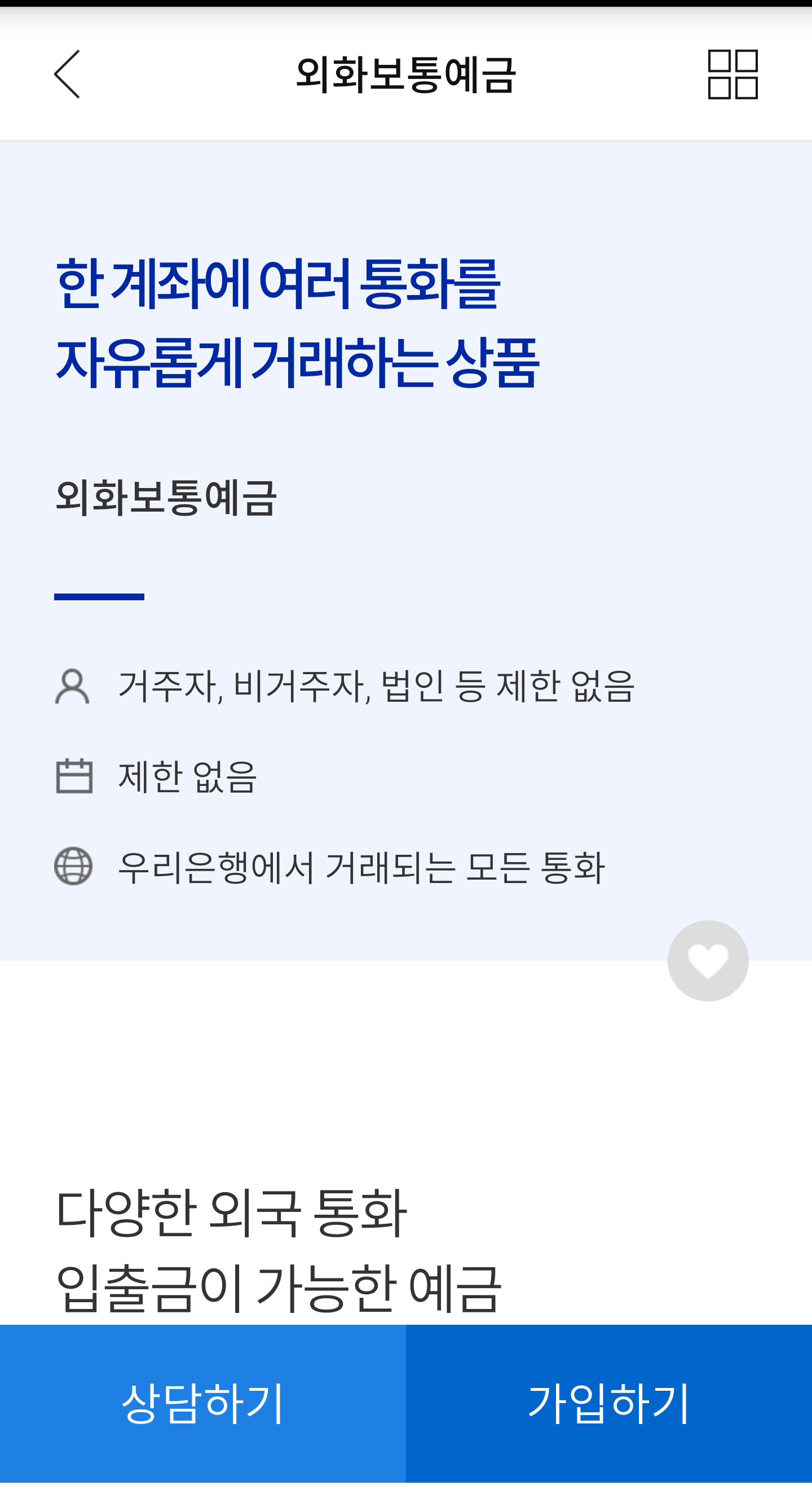 외화를 송금받을 일이 있어서 주거래 은행인 우리은행에서 외화예금 통장을 개설했다.