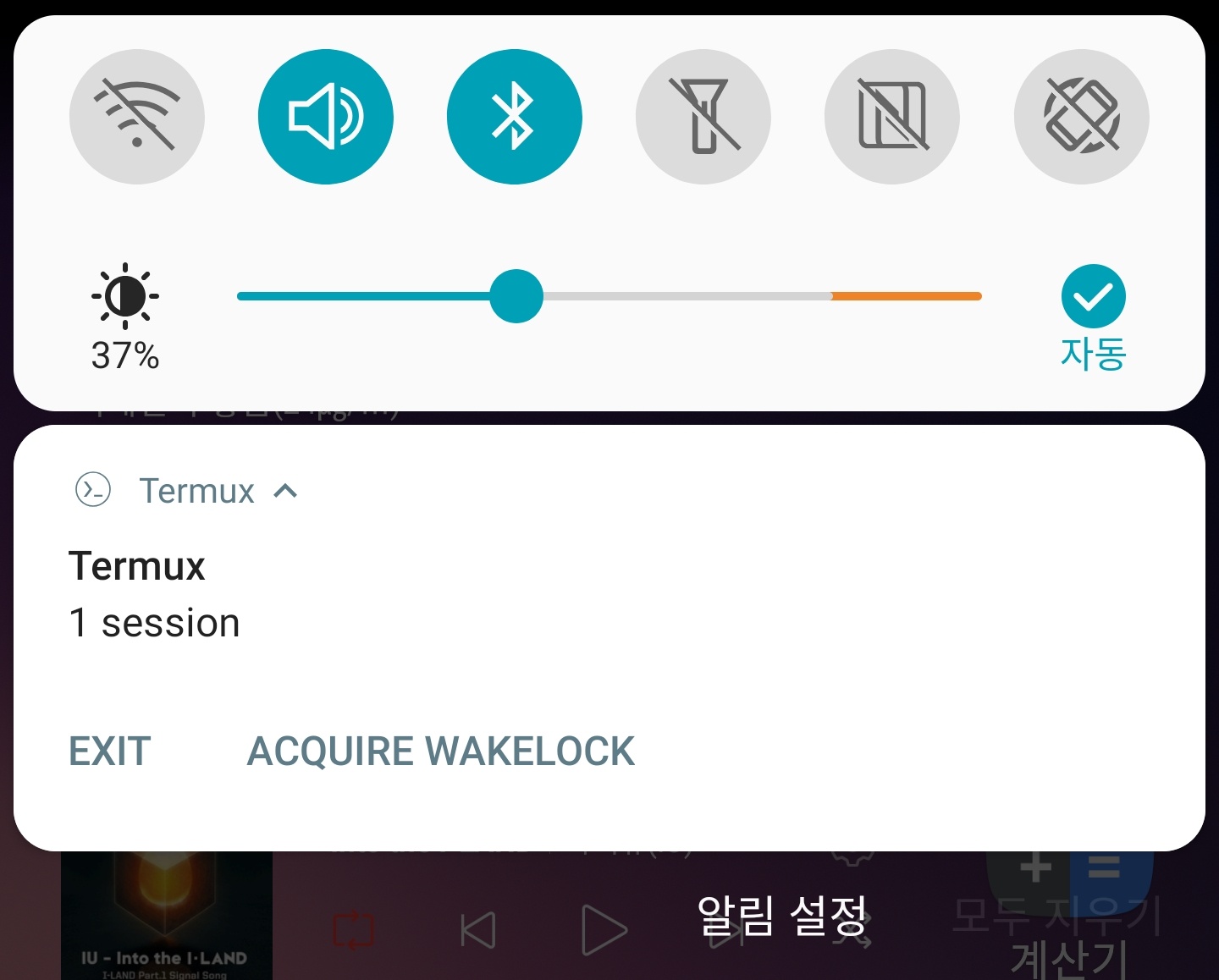아래와 같이 Termux 를 강제로 종료하지 않는 이상 백그라운드에서 계속 작업을 수행할 것이다.