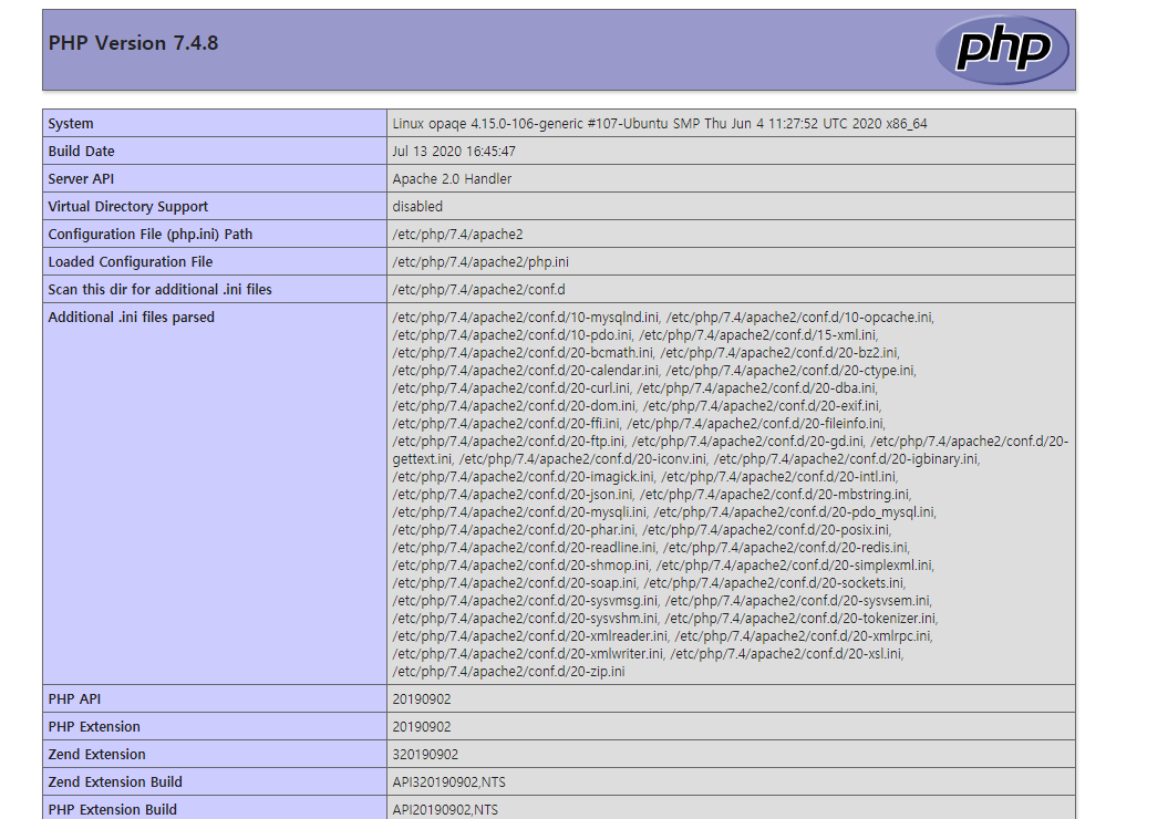 $ sudo a2query -m php7.4 --> php 모듈이 로드 되었는지 확인